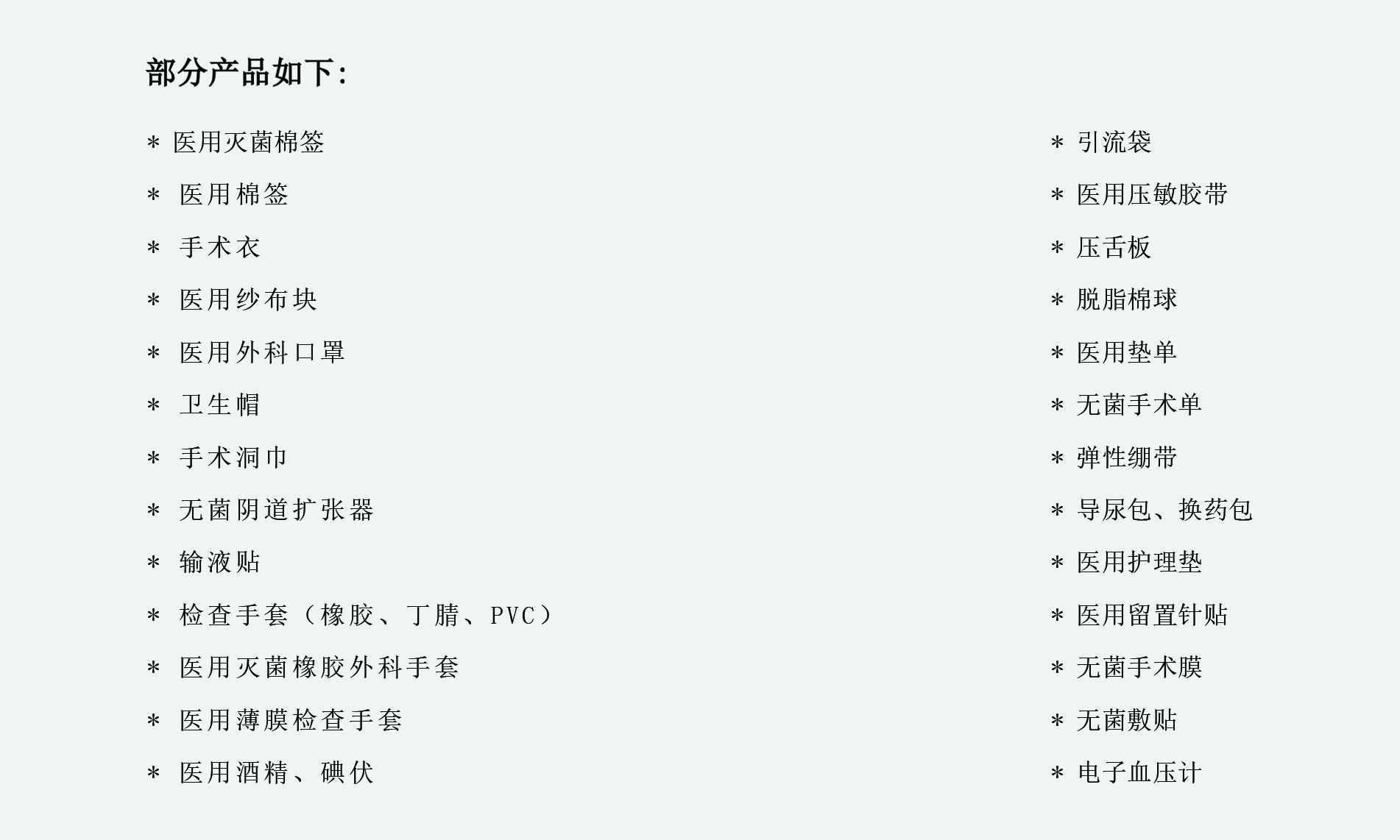 目前公司所生产以及授权的产品总计40多种,覆盖了医用卫生防护类,手术室敷料类,以及新布局的家用电子类和体外诊断类等众多品种,某些品种也入选了重庆市重点产品医药目录,为广大社会群体提供了优质的产品和良好的服务!